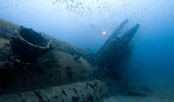 One hundred feet below the surface, darkening shades of green almost surrendered to blackness before the hulk of U-352 loomed into view. It sat proud and upright, as if it might blow its ballast, shudder and ascend after eighty year’s rest. I swam its length and imagined its crew’s final desperate fight against a crushing invasion of water, and before I turned away I reached out and pressed my hands against the German boat and paused, head bowed.
